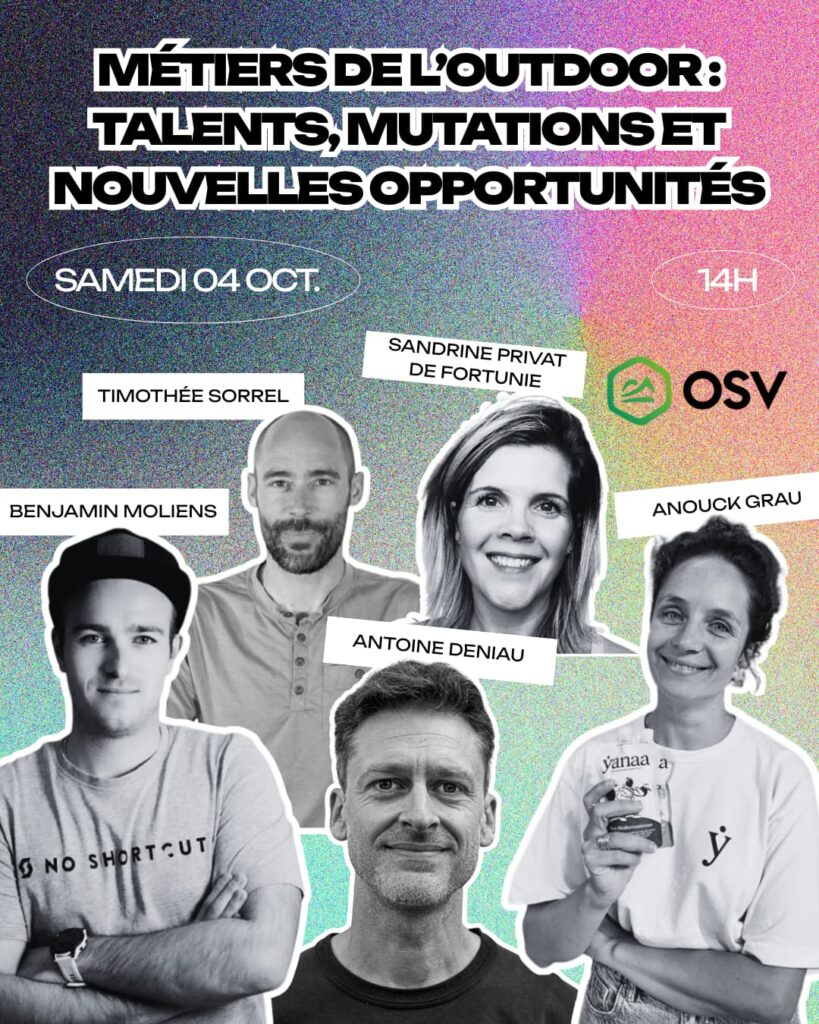 L’outdoor bouge vite, et avec lui, les métiers qui le composent. Innovation, éco-conception, digital, entrepreneuriat… certains jobs se transforment, d’autres apparaissent. Cette conférence animée par OSV met en lumière les tendances, les talents et les opportunités pour celles et ceux qui veulent lier passion et carrière. Un moment inspirant pour comprendre les mutations du secteur et imaginer ton avenir dans cet univers en pleine effervescence.